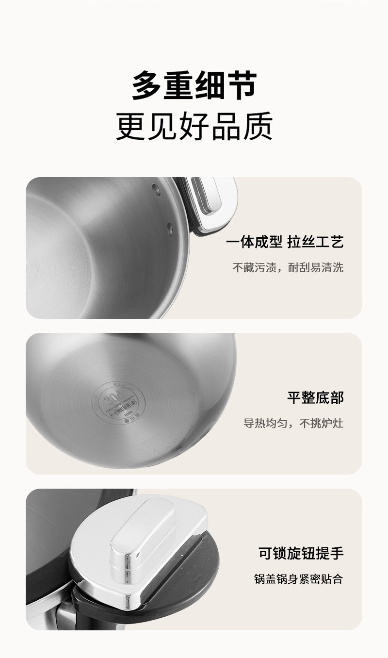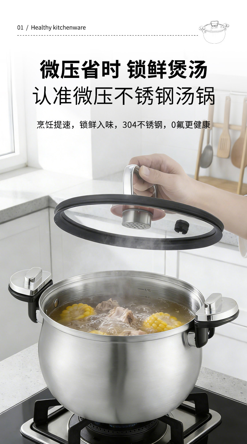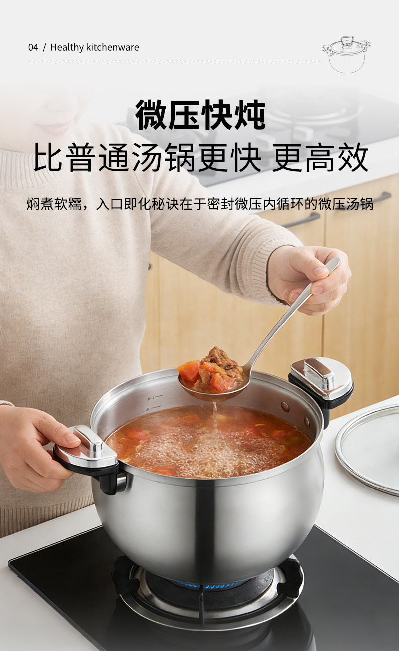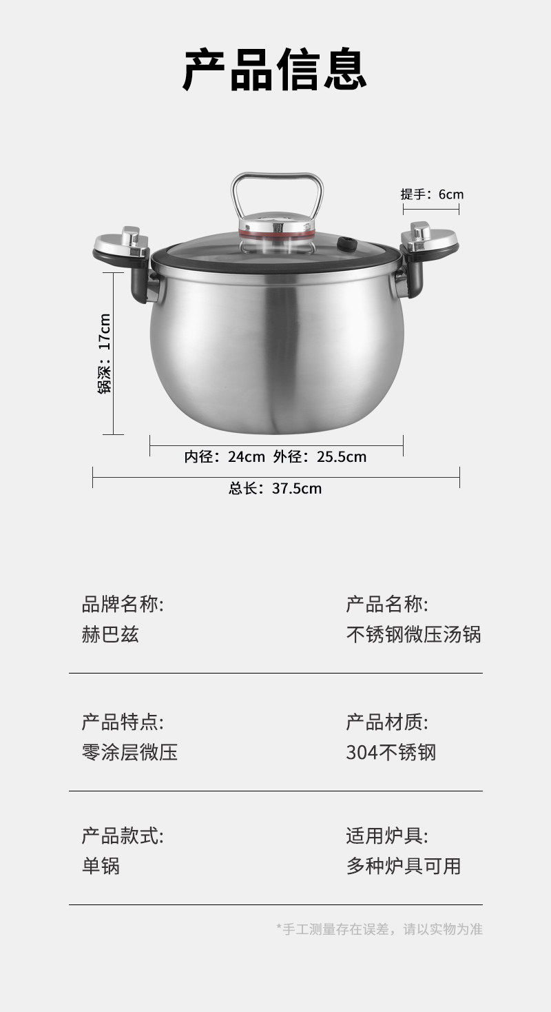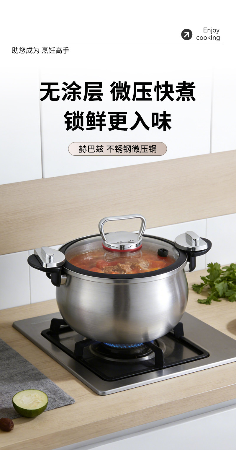 赫巴兹304不锈钢微压锅家用大容量加厚汤锅煮炖一体0涂层健康