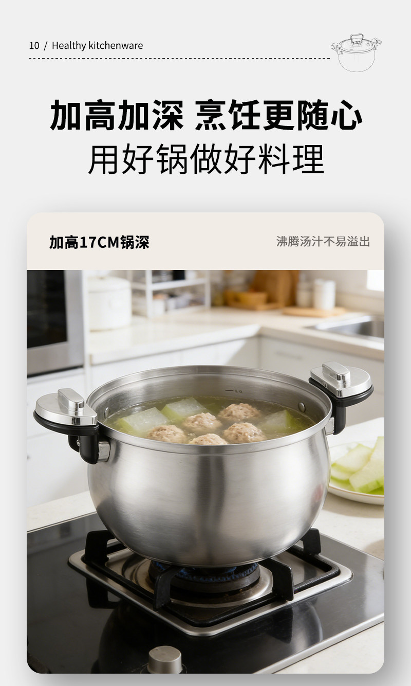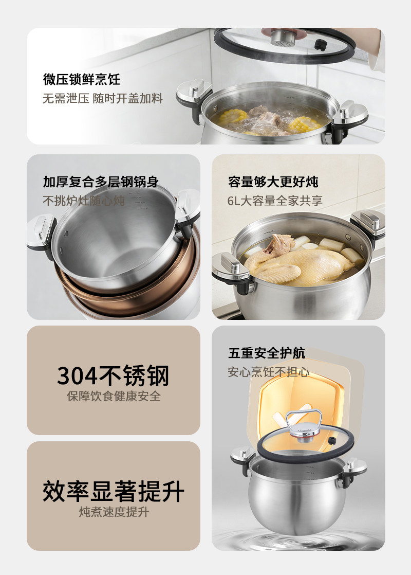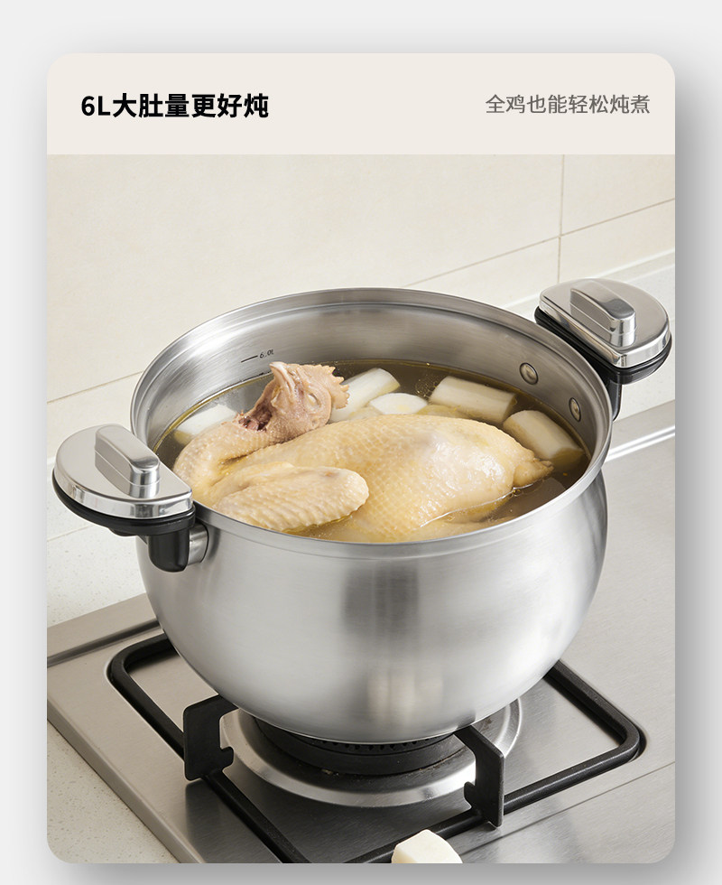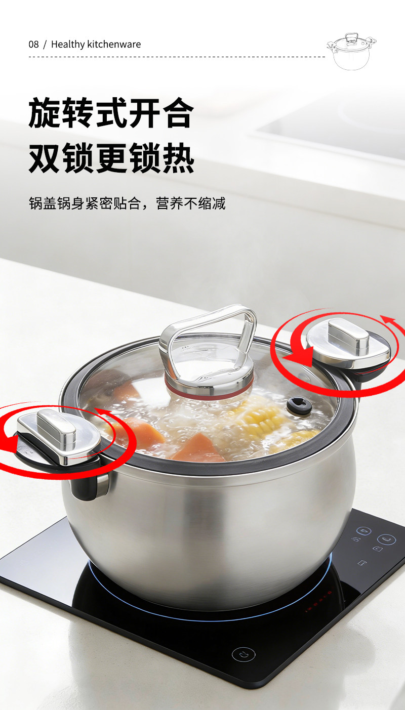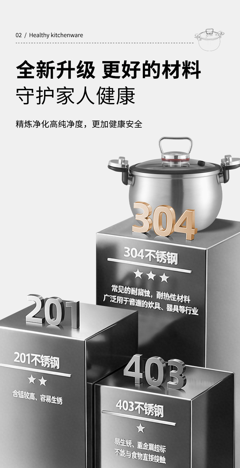 赫巴兹304不锈钢微压锅家用大容量加厚汤锅煮炖一体0涂层健康